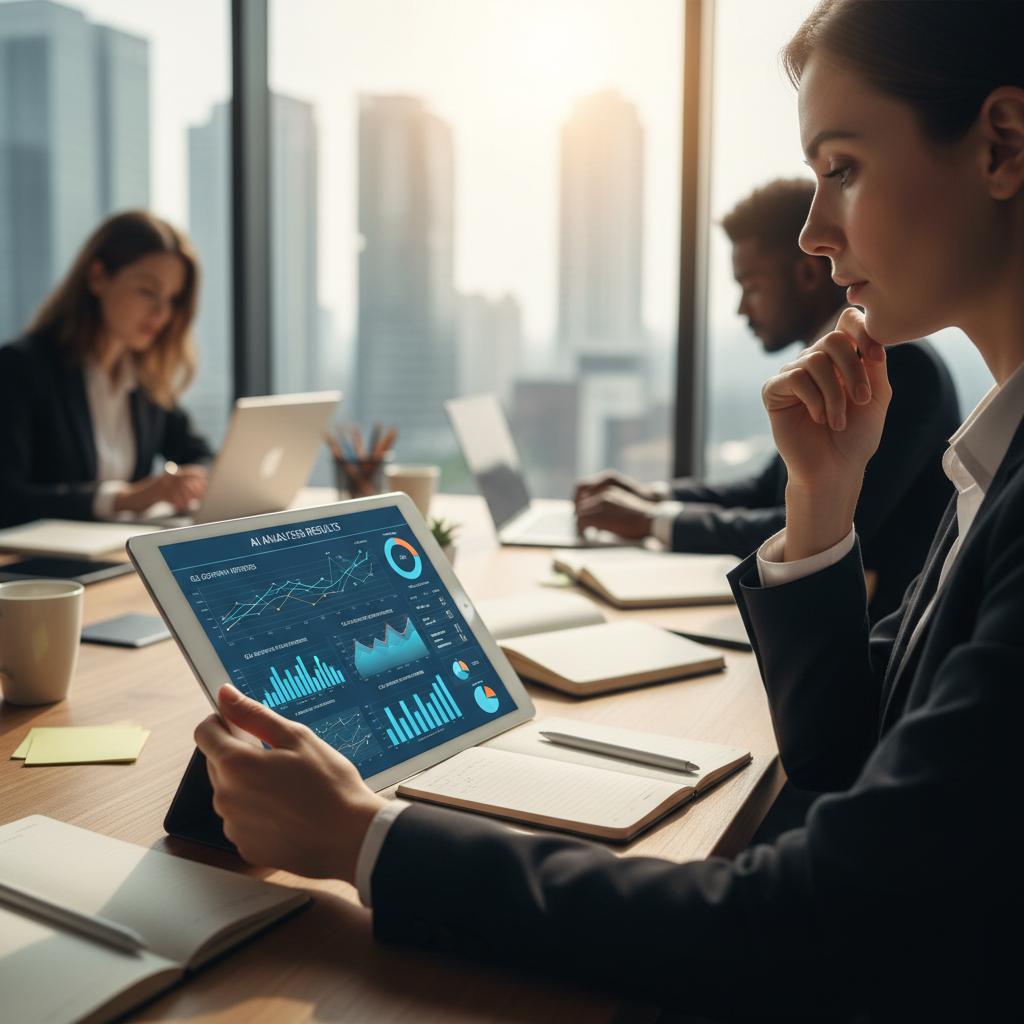 Manager analizujący wyniki rekomendacji AI podczas pracy nad strategią firmy