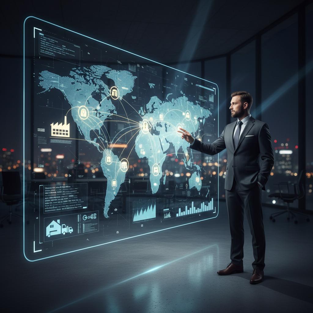Zdjęcie: Konsultant w polskiej firmie analizuje złożoną cyfrową mapę łańcucha dostaw – symbol zmiany paradygmatów w zarządzaniu logistyką.