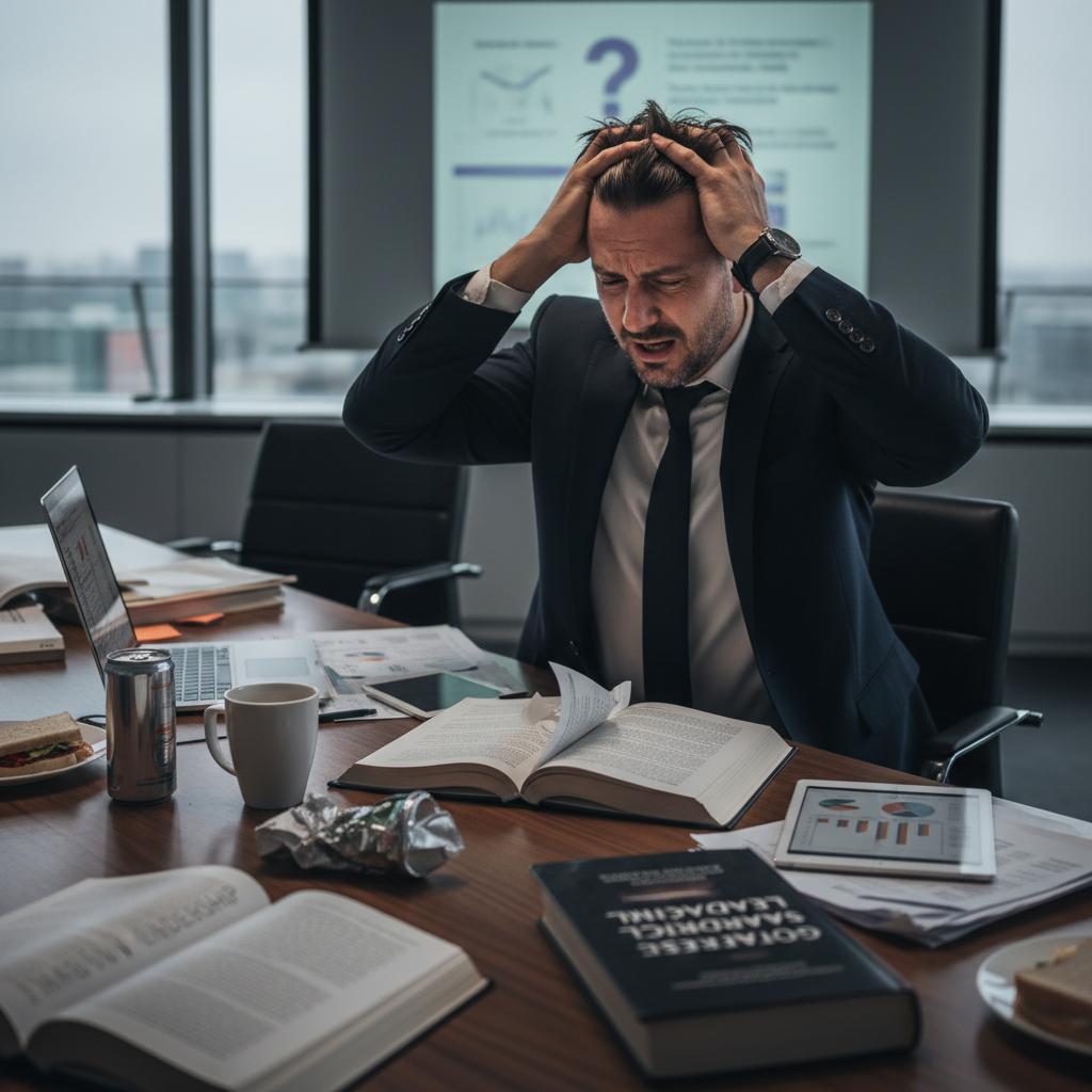 Polski menedżer analizujący zachodnie podręczniki z narastającą frustracją. Słowa kluczowe: strategie zarządzania cyklem życia produktu, różnice kulturowe.