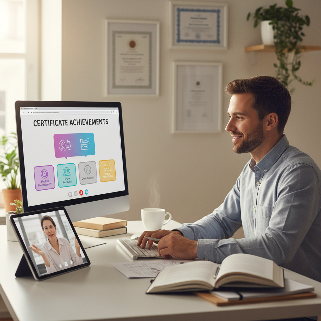 Proces zdobywania praktycznych i teoretycznych kompetencji biznesowych z wykorzystaniem narzędzi internetowych, najczęściej poprzez platformy LMS, webinary, symulacje lub interaktywne kursy wideo.